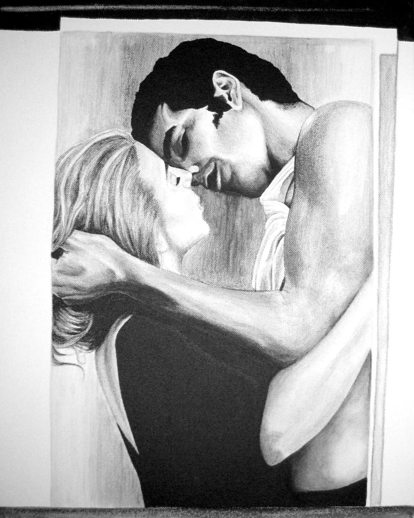 Diese Erotik-Reihe mit schwarzer Acrylfarbe auf weißer Leinwand lässt Raum für Phantasie sinnlicher Leidenschaft.